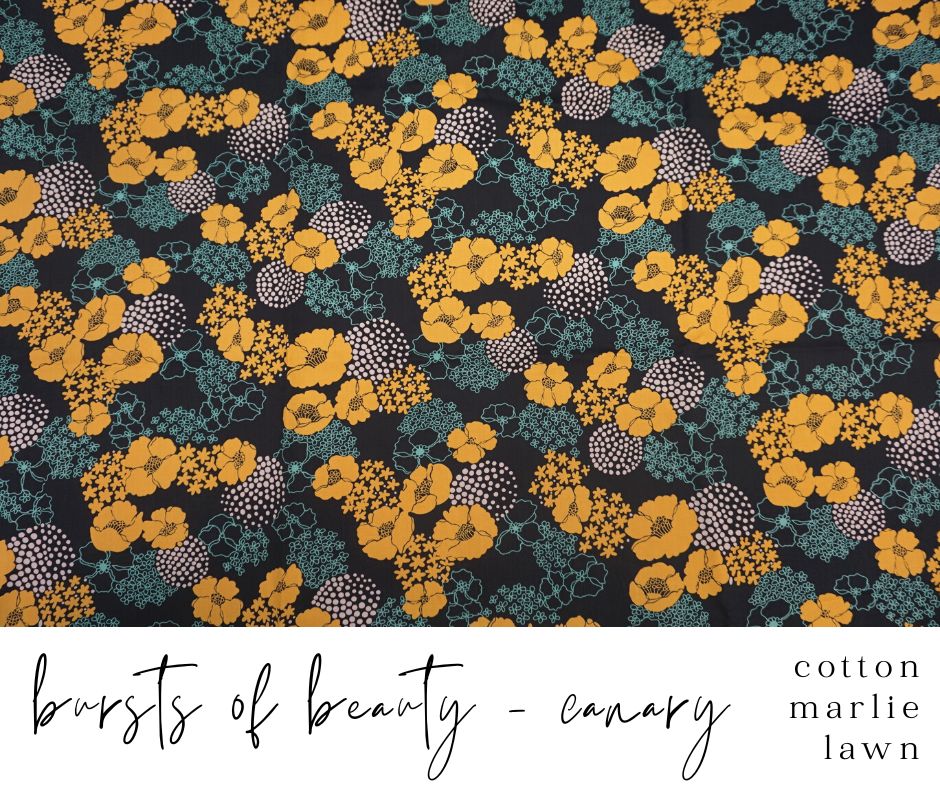 Whilst this is by no means our whole collection of prints with yellow in, we have tried to show a selection of fabrics where a majority of the print has at least one shade of yellow in it.